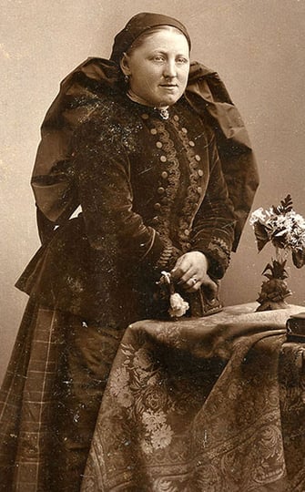 Carte de Visite – Porträtfotografien aus verschiedenen Regionen Oberösterreichs mit schwarzen Seidentaftkopftüchern. (Land Oberösterreich. Sammlung Volkskunde und Alltagskultur)